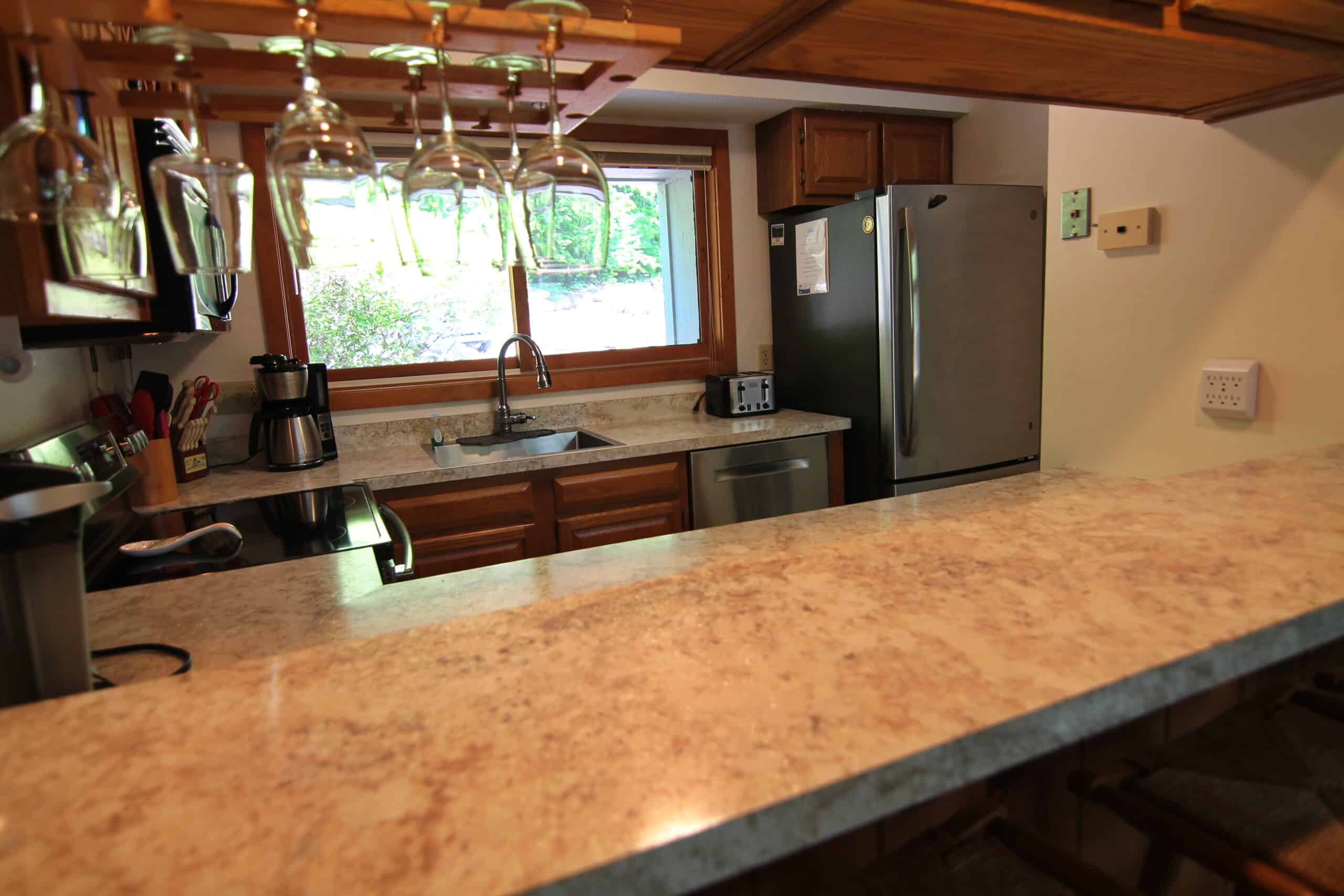JUST 1 MILE FROM LOON MOUNTAIN-This is a 4 bedroom townhome that includes 2 master bedroom suites, each with a private bath. There is an open concept and spacious kitchen, dining and living area with vaulted ceilings, wood burning fireplace and lots of glass including a slider leading to a large deck. The lower level features 2 more bedrooms, family room, laundry room and a 3rd full bath. **PLUS, bonus sleeping area in family room! Convenient, spacious and great for the large family or 2 couples who wish to share the winter season.